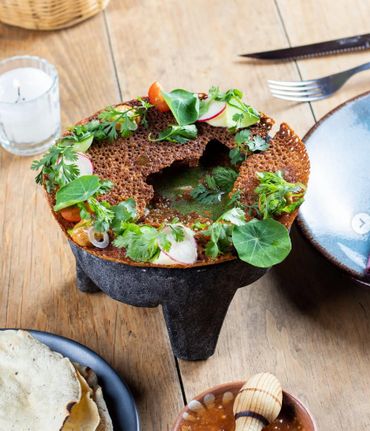 Enclavado en una calle adoquinada, un ambiente rústico se fusiona con la exquisita gastronomía tradicional oaxaqueña en este almuerzo de 3 tiempos con maridaje de vinos.